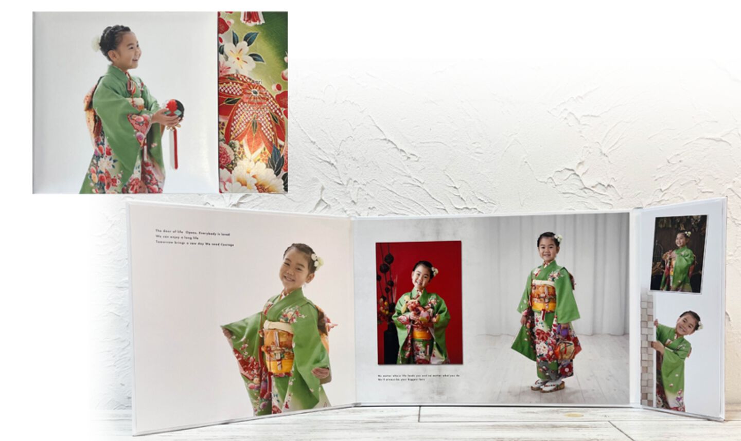 お宮参り、七五三、入学卒業など、お子様の成長をまとめたり、家族写真を毎年撮影してどんどん増やしていただくのもオススメです。家族の歴史がつまった1冊はかけがえのない宝物になります。