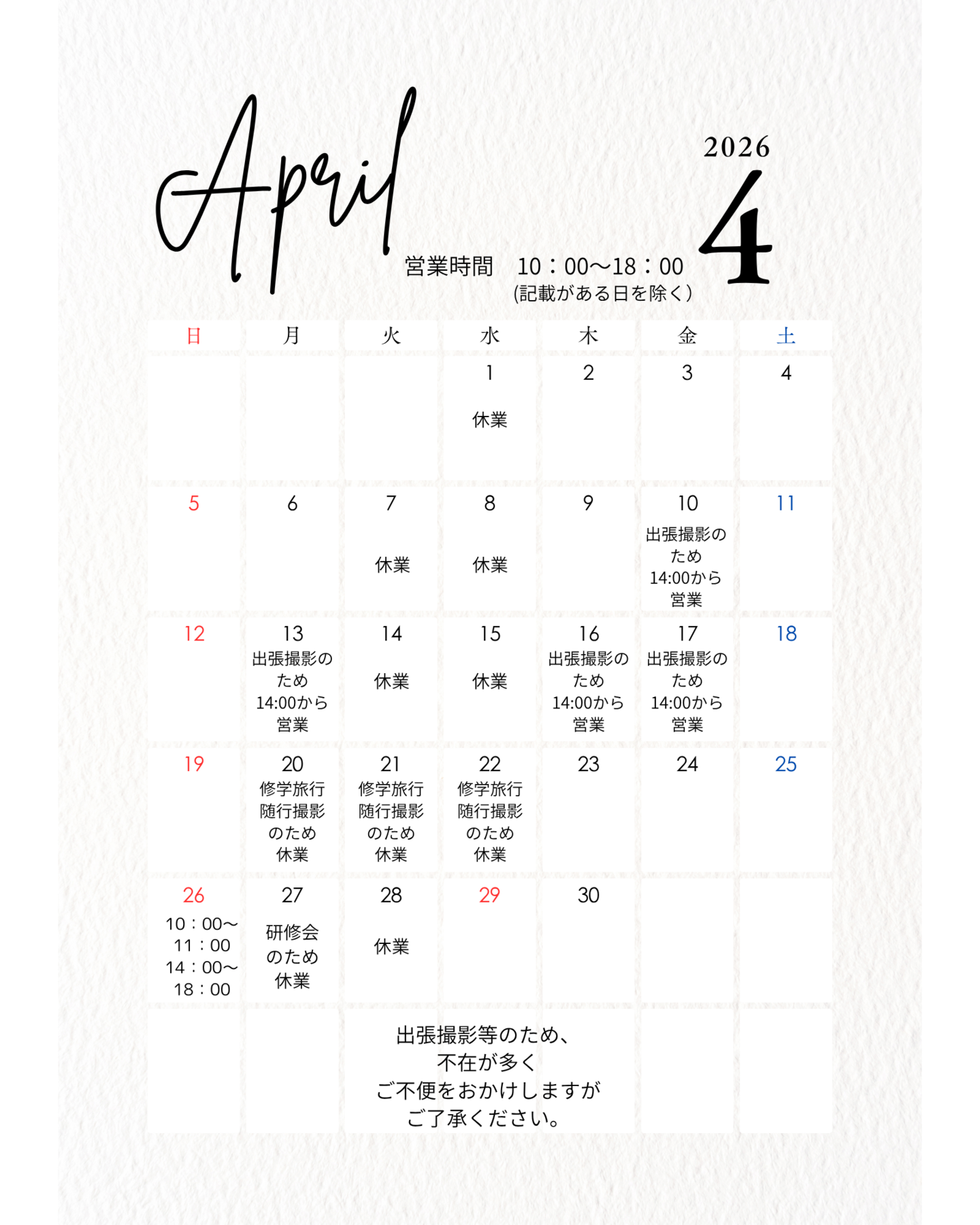 学校卒業アルバム製作も多数お引き受けさせていただいている関係で、スタジオでの撮影業務はご予約にてお受けしております。